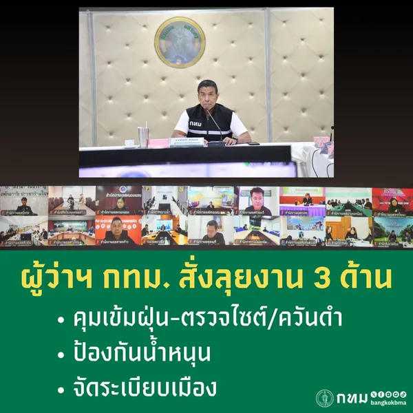 กทม. ลุยงาน 3 ด้าน คุมเข้มฝุ่น-ตรวจไซต์/ควันดำ ป้องกันน้ำหนุน