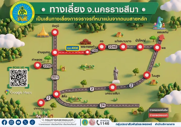 ทช. ได้ดำเนินการติดตั้งป้ายแนะนำเส้นทางเลี่ยงตามโครงข่ายทางหลวงชนบท เพื่ออำนวยความสะดวกและความรวดเร็วในการเดินทางให้กับประชาชน ทั้งนี้ หากต้องการความช่วยเหลือหรือสอบถามข้อมูลเพิ่มเติมติดต่อได้ที่เจ้าหน้าที่แขวงทางหลวงชนบทในพื้นที่ หรือสายด่วน ทช. โทร. 1146