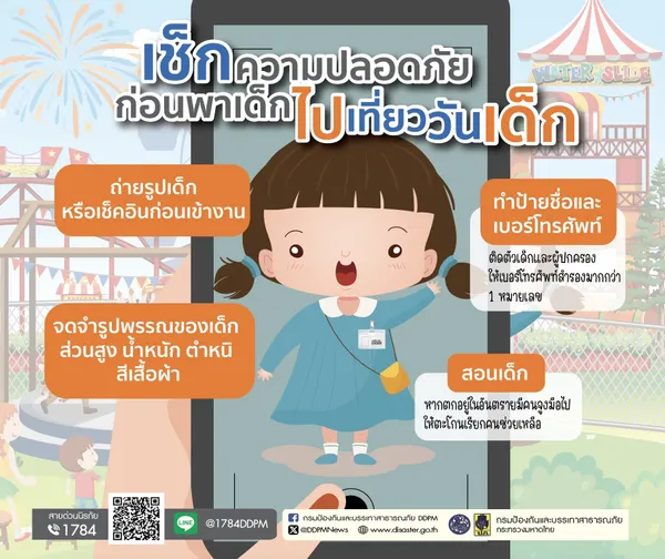 นายธีรพัฒน์ คัชมาตย์ อธิบดีกรมป้องกันและบรรเทาสาธารณภัย (ปภ.) เปิดเผยว่า วันเสาร์ที่สองของเดือนมกราคมของทุกปี ได้กำหนดให้เป็นวันเด็กแห่งชาติ ซึ่งปีนี้ตรงกับวันเสาร์ที่ 10 มกราคม 2569 ซึ่งหลายพื้นที่จะมีการจัดกิจกรรมต่างๆ มากมาย และจะมีเด็กๆ เข้าร่วมเป็นจำนวนมาก หากขาดความระมัดระวังอาจเกิดเหตุไม่คาดคิดขึ้น เพื่อความปลอดภัย กรมป้องกันและบรรเทาสาธารณภัย ขอแนะให้ผู้ปกครองพาลูกเที่ยวงานวันเด็กอย่างปลอดภัย