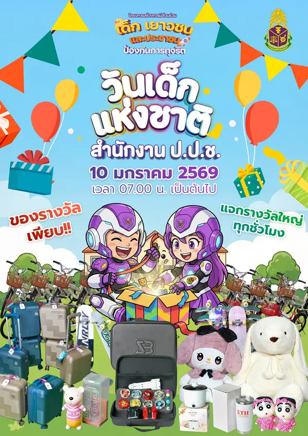 เนื่องในวันเด็กแห่งชาติประจำปี 2569 ในวันเสาร์ที่ 10 มกราคม 2569 ร่วมปลูกจิตสำนึกต้านทุจริต เริ่มต้นจากวันเด็ก