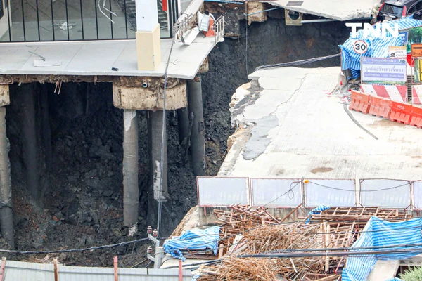 ภาพถนนทรุดตัวครั้งใหญ่บริเวณด้านหน้าโรงพยาบาลวชิรพยาบาลและสถานีตำรวจสามเสน จุดเกิดเหตุมีลักษณะเป็นหลุมกว้างประมาณ 30 x 30 เมตร และลึกกว่า 50 เมตร โดยมีแนวโน้มขยายตัวต่อเนื่อง เจ้าหน้าที่สถานีดับเพลิงและกู้ภัยสามเสนเข้าพื้นที่ทันทีเพื่อควบคุมสถานการณ์ และยืนยันว่าเบื้องต้นยังไม่มีรายงานผู้ได้รับบาดเจ็บ