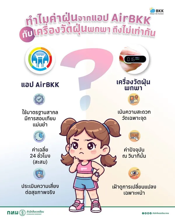 ถามว่าทำไมค่าฝุ่นจาก AirBKK กับ เครื่องวัดพกพา ถึงต่างกัน