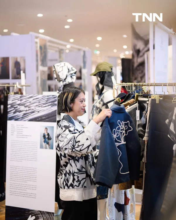เริ่มจากแบรนด์แสนเก๋จากจังหวัดแพร่ “KANZ BY THAITOR” ที่สานต่อเทคนิคการทำผ้าบาติกจากรุ่นพ่อสู่รุ่นลูก นำมาออกแบบสร้างสรรค์เป็นเสื้อผ้าที่เรียบง่าย ร่วมสมัย สวมใส่ได้จริง พร้อมคำนึงถึงการใช้ได้ยาวนานและความยั่งยืน มีเอกลักษณ์ที่น่าสนใจคือการนำเศษผ้าเหลือใช้มาปะติดปะต่อเป็นผ้าชิ้นใหม่ เพื่อให้เกิดมิติของลาย จนเหมือนงานศิลปะที่สามารถสวมใส่ได้ โดย กานต์ศิริ พิทยะปรีชากุล นักออกแบบเจ้าของแบรนด์ เผยว่านิทรรศการครั้งนี้ KANZ BY THAITOR ตีความโชคลาภสู่คอลเลกชัน “Hom Dok - Hom Khan ฮ่มดอก ฮ่วมขัน” นำแรงบันดาลใจจากหม้อดอกล้านนา หรือ “ปูรณฆฏะ” มาสร้างลวดลายร่วมสมัยแห่งความอุดมสมบูรณ์ โชคลาภ ความมั่งมี “ตามคติความเชื่อล้านนาเชื่อกันว่าเป็นหม้อดอกไม้แห่งความสมบูรณ์ รวมถึงความสุข สงบ ร่มเย็น อุดมสมบูรณ์ เปี่ยมด้วยปัญญานำไปสู่ความโชคดี โชคลาภ ความมั่งมี แฝงด้วยนัยะความหมายของดอกไม้ที่พบในพิธีกรรมต่าง ๆ ของล้านนามายาวนาน ถ่ายทอดออกมาเป็นลวดลายใหม่ที่ถูกตัดทอน และผสมผสานลายดอกไม้บาติกของรุ่นพ่อรุ่นแม่ ให้ดูร่วมสมัยในแบบ KANZ BY THAITOR ที่ใส่ได้ในทุกวัน”