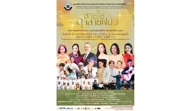 ขอเชิญชวนประชาชนร่วมอิ่มเอมใจไปกับคอนเสิร์ตการกุศล “สายใยดุจสายฝน 3” เพื่อร่วมกันสานฝันที่มองไม่เห็นให้เป็นจริง แบ่งปันโอกาสและความสุขให้แก่น้อง ๆ ผู้พิการทางการเห็น ผ่านพลังแห่งดนตรีและสายใยแห่งการให้