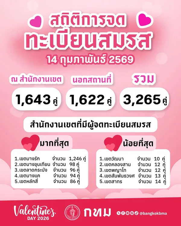 สถิติการจดทะเบียนสมรส วันวาเลนไทน์ 2569