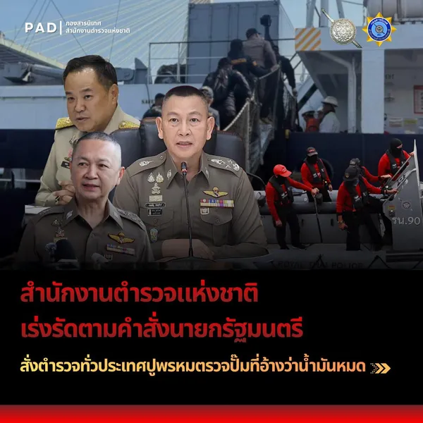 ทั้งนี้ ในการตรวจสอบน้ำมันทั่วประเทศ พล.ต.อ.ธัชชัยฯ ได้สั่งการให้เจ้าหน้าที่ ศปนม.ตร. ประสานหน่วยที่เกี่ยวข้องสนธิกำลังปูพรมทั่วประเทศ เป้าหมายตรวจสอบ 3 มิติหลัก ได้แก่
