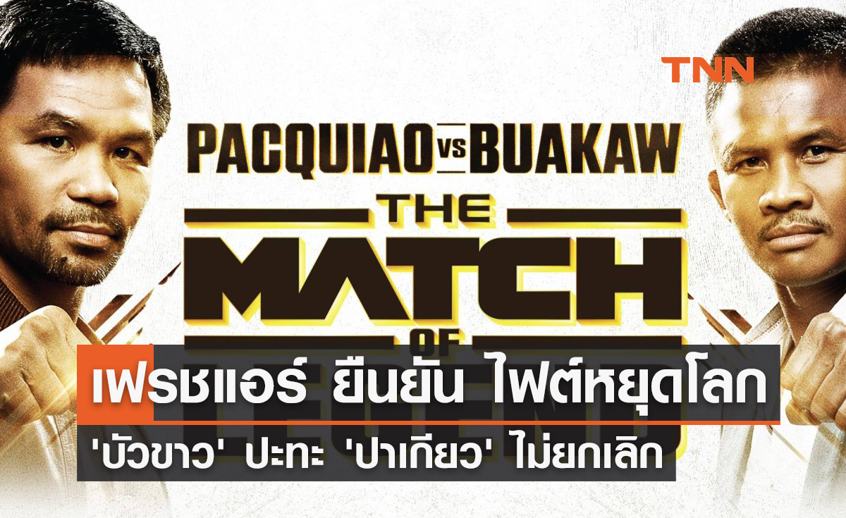 - เฟรชแอร์ ยืนยัน ไฟต์หยุดโลก 'บัวขาว' ปะทะ 'ปาเกียว' ไม่ยกเลิก