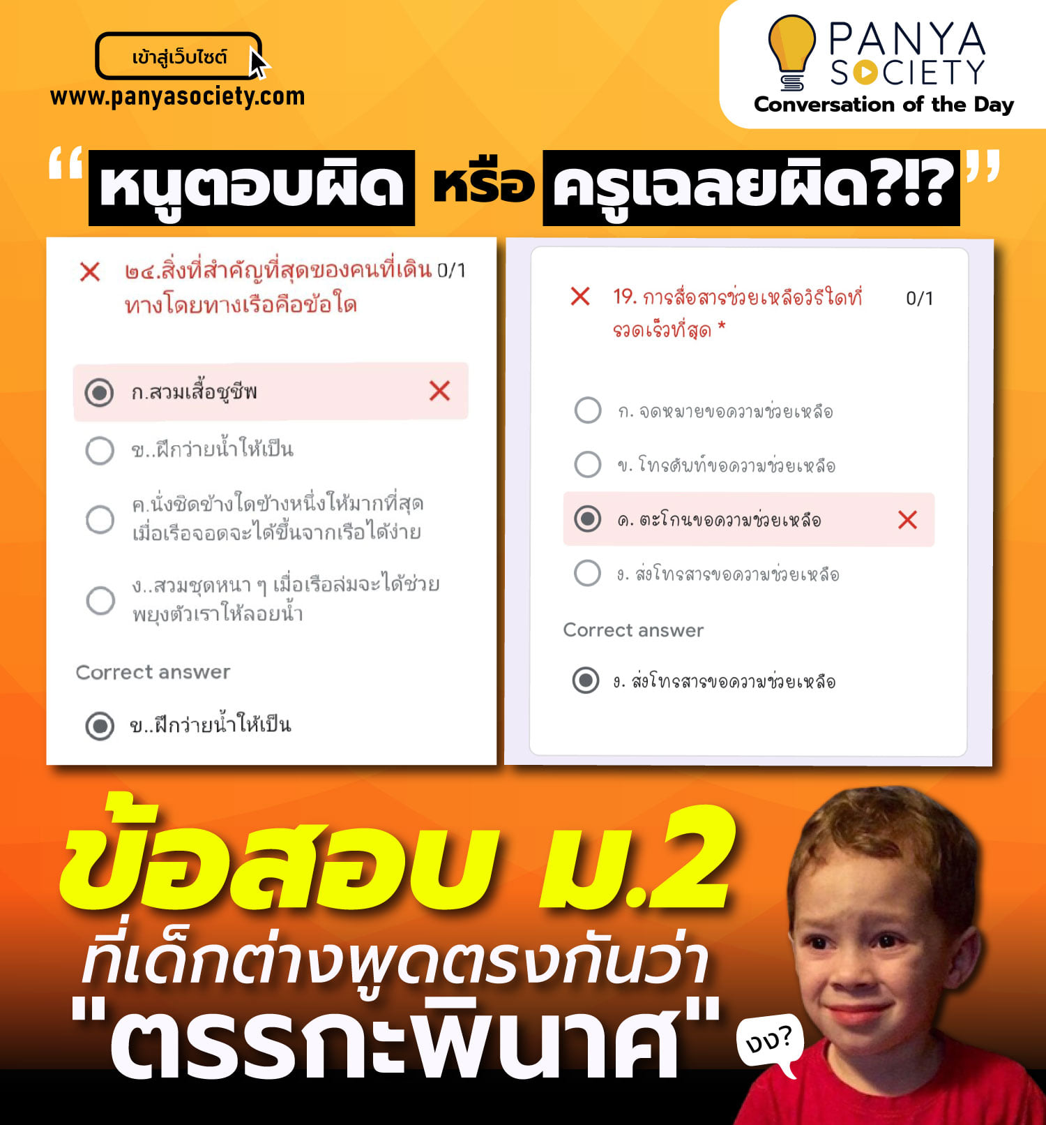 3) เราเห็นข้อสอบแบบนี้ เรามีคำถามเลยนะว่า "ทุกวันนี้ครูเฉลยข้อสอบ เฉลยโจทย์ให้เด็กถูกต้องรึเปล่า?" แล้วพวกเขาเรียน หรือจดจำวิชาความรู้อะไรกันอยู่ แล้วถ้าครูสอนผิดๆไปล่ะ เฉลยมั่วๆไปล่ะ เด็กๆกำลังจดจำอะไร?