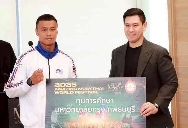 ในงานแถลงข่าว "Amazing Muaythai World Festival 2025" อย่างเป็นทางการ ม.กรุงเทพธนบุรี ได้มอบทุนการศึกษาเพื่อสนับสนุนการพัฒนานักมวยไทยรุ่นใหม่และบุคลากรที่เกี่ยวข้องกับอุตสาหกรรมมวยไทย การมอบทุนการศึกษาในครั้งนี้สะท้อนถึงวิสัยทัศน์ของมหาวิทยาลัยในการสร้างความเชื่อมโยงระหว่างการศึกษาและการกีฬา โดยเฉพาะกีฬามวยไทยที่เป็นเอกลักษณ์ของไทย การลงทุนในด้านการศึกษาจะช่วยยกระดับมาตรฐานของนักมวยไทยให้มีความรู้ทั้งในด้านทฤษฎีและปฏิบัติสู่สากล.
