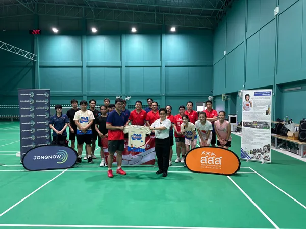 คุณขวัญรักษ์ เม้งตระกูล ผู้จัดการโครงการแผนงานสื่อสารความปลอดภัยทางถนน สสส. เป็นตัวแทนร่วมจัดงาน พร้อมด้วยคุณแหวน คุณซันนี่ จากทีม Jongnow และคุณศรัณยู ลวางกูร Senior Leader, Regional Network & Service Assurance (SOUTH) ประธานชมรมทรู แบดมินตัน ประธานชมรมทรู แบดมินตัน ที่ผนึกกำลังส่งต่อความปลอดภัยในครั้งนี้