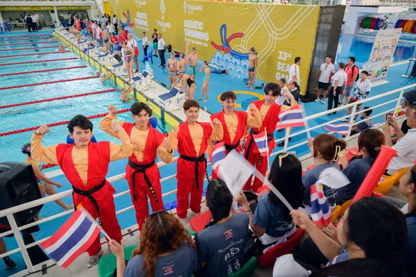 พี่ล่ำ และทีม Cheer Squad ไปร่วมสร้างสีสัน ตั้งแต่การแข่งขันว่ายน้ำ เมื่อวันที่ 11 ธันวาคม เปิดตัวสนามแรกแบบคึกคัก และประเดิมชัยชนะร่วมกับทีมว่ายน้ำไทย