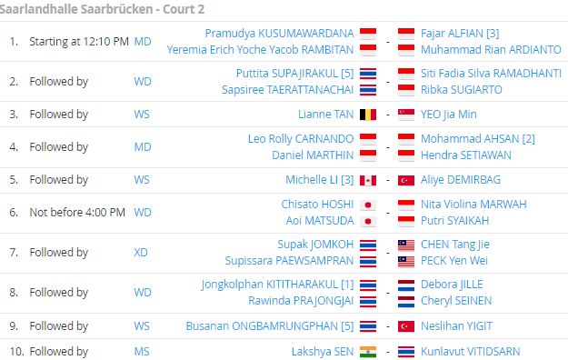 การแข่งขันแบดมินตันรายการ "ไฮโล โอเพ่น 2021" รายการระดับเวิลด์ทัวร์ 500 ชิงเงินรางวัลรวม 320,000 เหรียญสหรัฐ หรือประมาณ 10,688,000 บาท ที่ซาร์บรู๊คเค่น ประเทศเยอรมนี เดินทางมาถึงรอบก่อนรองชนะเลิศ ในวันนี้ (5 พ.ย. 64) โดยทรูวิชั่นส์ ทรูสปอร์ต HD2 (ช่อง 667) และ ทรูสปอร์ต 7 (ช่อง 686) จะเริ่มทำการถ่ายทอดสด ในเวลา 18.00 น. เป็นต้นไป