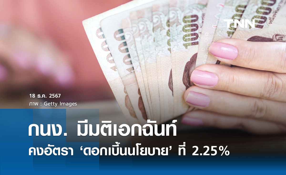 กนง. มีมติเอกฉันท์คงอัตรา "ดอกเบี้ยนโยบาย" ที่ 2.25%