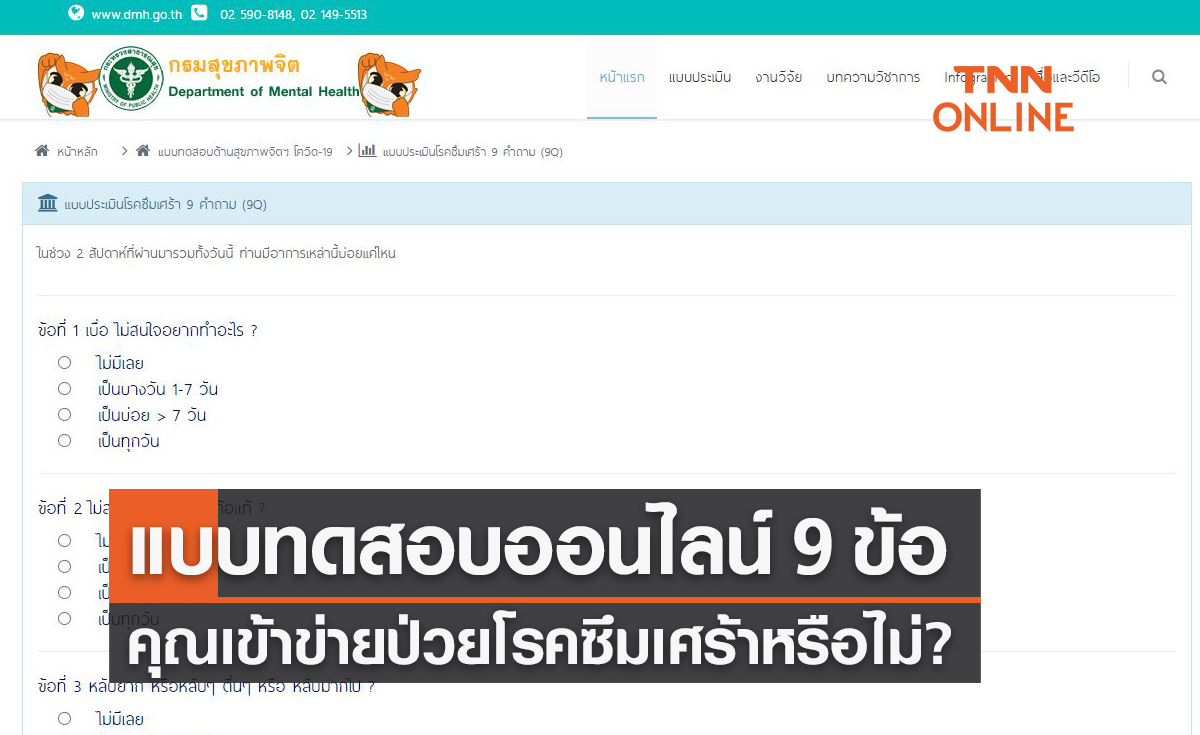 โรคซึมเศร้า แบบทดสอบประเมินออนไลน์ 9 ข้อ คุณเข้าข่ายหรือไม่?