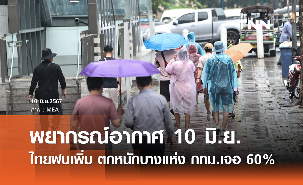 พยากรณ์อากาศวันนี้ 10 มิถุนายน ไทยตอนบนฝนเพิ่มขึ้น ตกหนักบางแห่ง