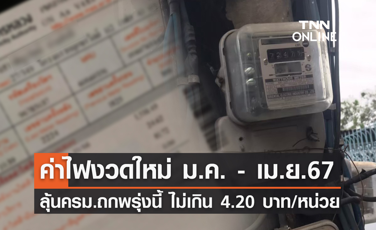 ค่าไฟงวดใหม่ ม.ค. - เม.ย. 2567 ก.พลังงาน ชง ครม.พรุ่งนี้ ไม่เกิน 4.20 บาทต่อหน่วย