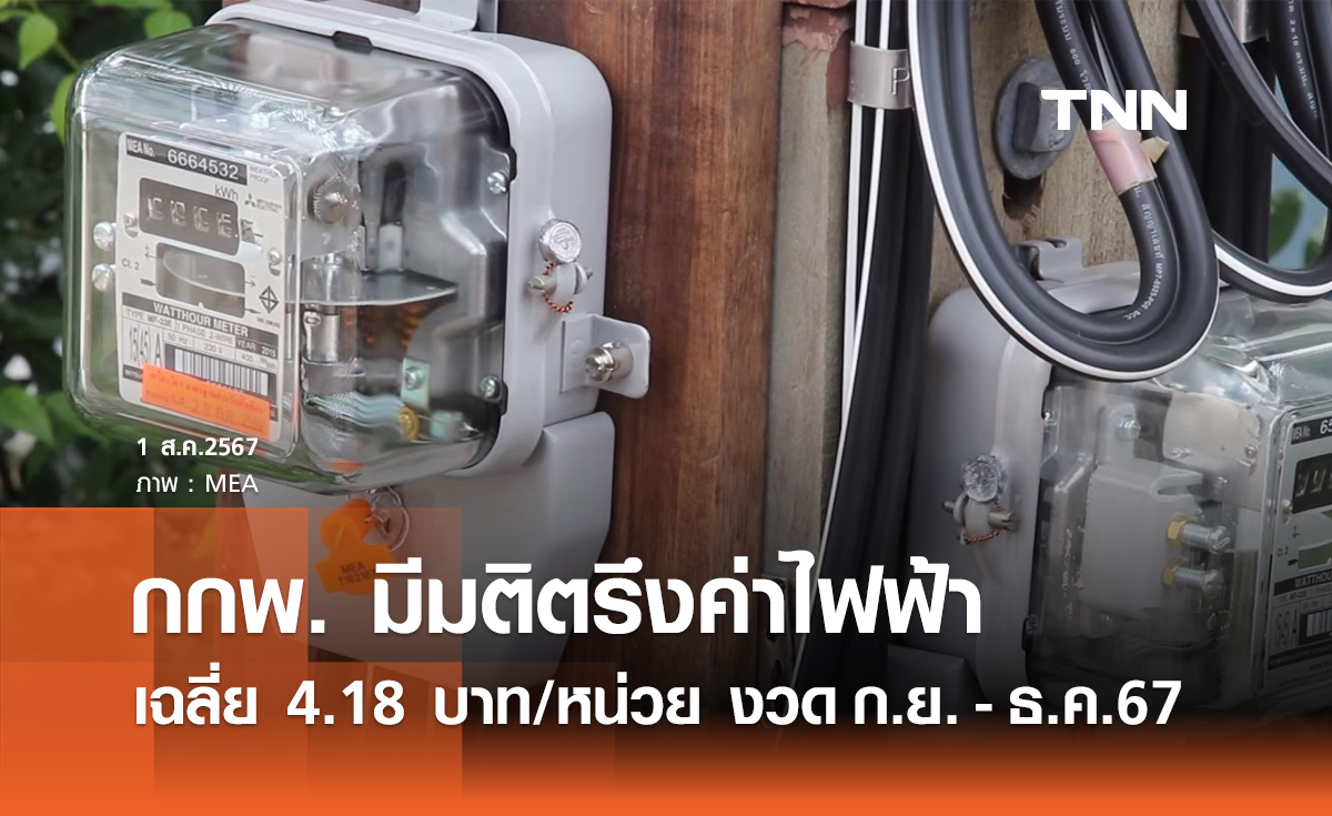 กกพ. ตรึง "ค่าไฟฟ้า" เฉลี่ย 4.18 บาท/หน่วย งวดกันยายน-ธันวาคม 2567