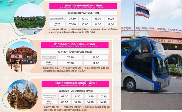 บขส. เปิด 3 เส้นทางใหม่ ดอนเมือง-พัทยา, ดอนเมือง-หัวหิน, สุวรรณภูมิ-พัทยา เริ่ม 8 มี.ค.นี้