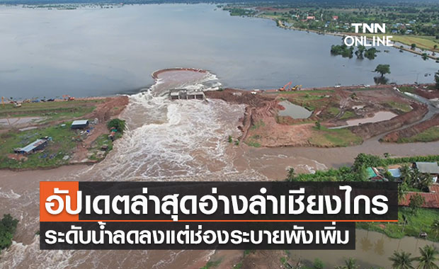 อัปเดตสถานการณ์ อ่างเก็บน้ำลำเชียงไกร ระดับน้ำเริ่มลดแต่คันดินถูกกัดเซาะ