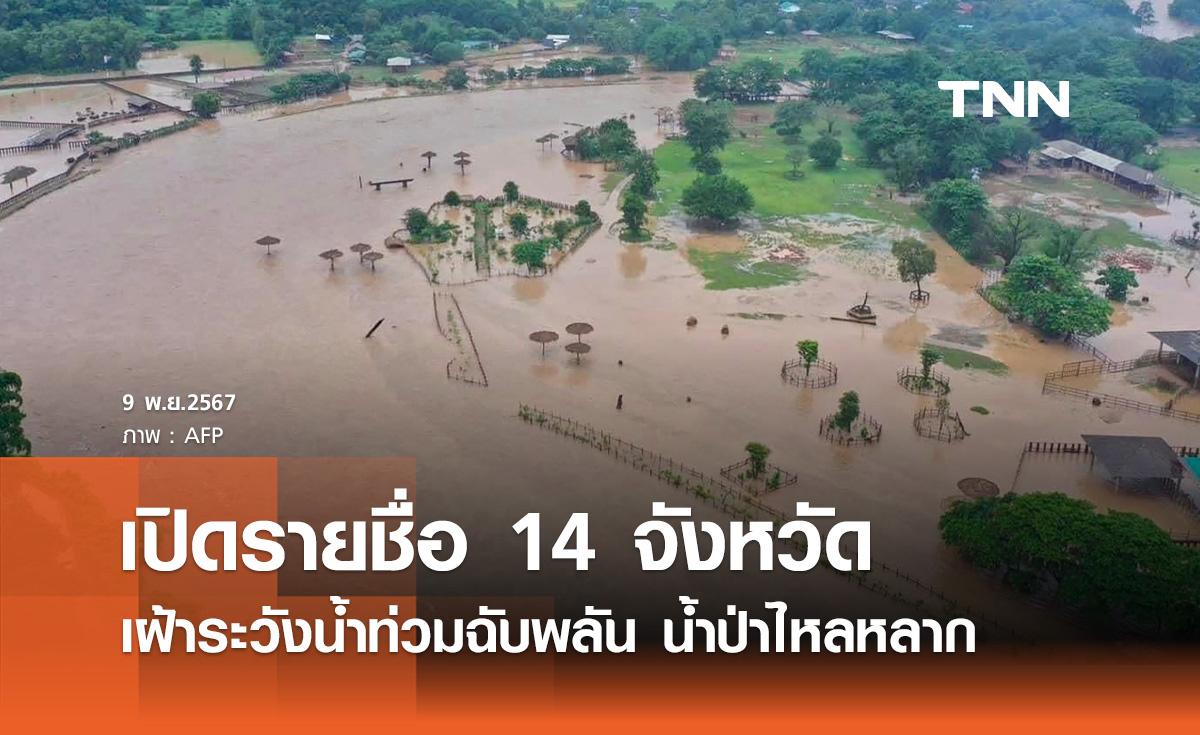 ปภ. เตือน 24 จังหวัด "เหนือ-อีสาน-กลาง-ใต้" ระวังน้ำท่วม-ดินถล่ม 15-17 ส.ค.