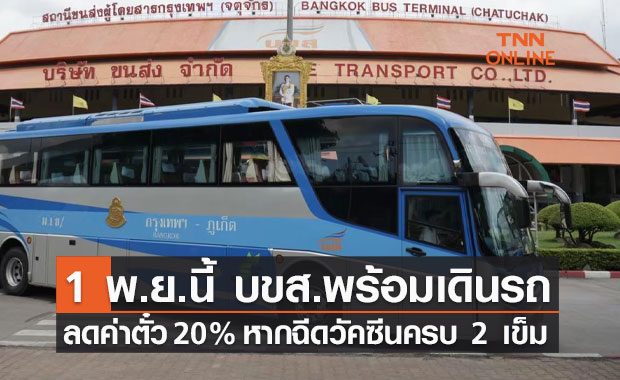 1 พ.ย.นี้ บขส.พร้อมเดินรถ ลดค่าโดยสาร 20% หากฉีดวัคซีนครบ 2 เข็ม