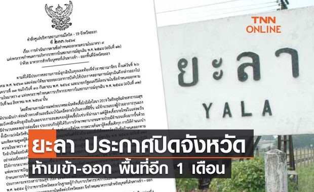 "ยะลา" ประกาศปิดจังหวัด ห้ามเข้า-ออก พื้นที่อีก 1 เดือน