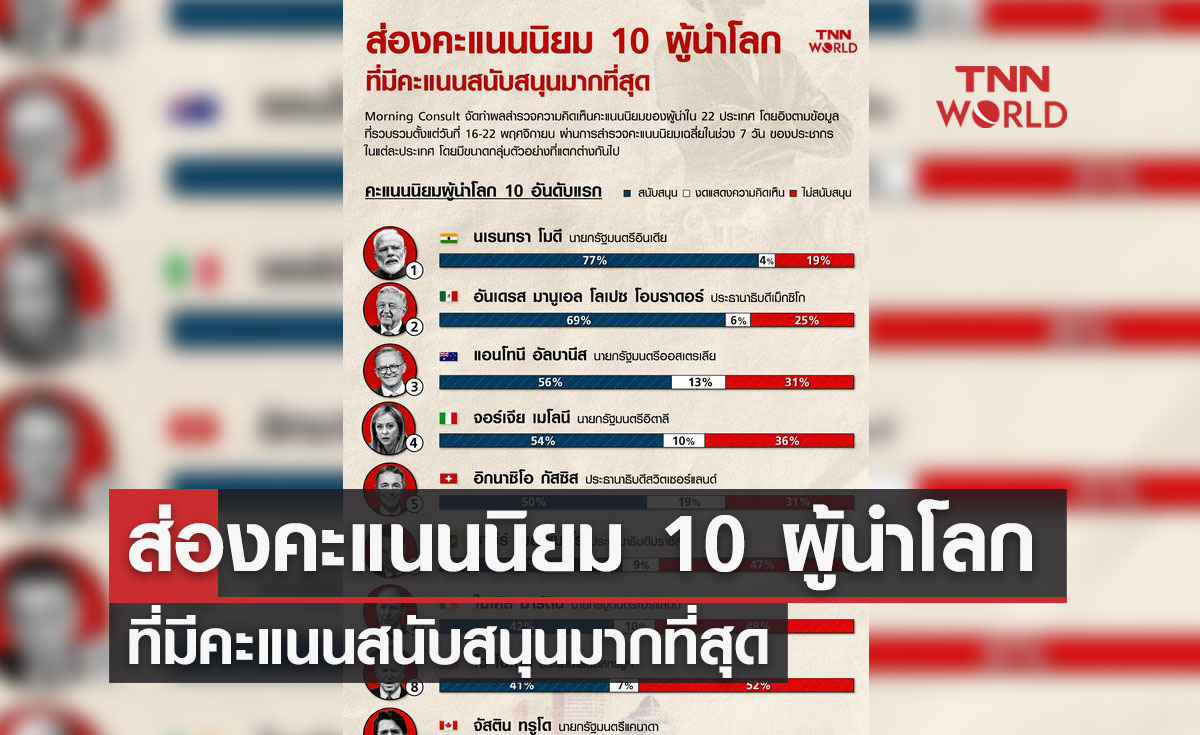 Infographic : ส่องคะแนนนิยม 10 ผู้นำโลกที่มีคะแนนสนับสนุนมากที่สุด