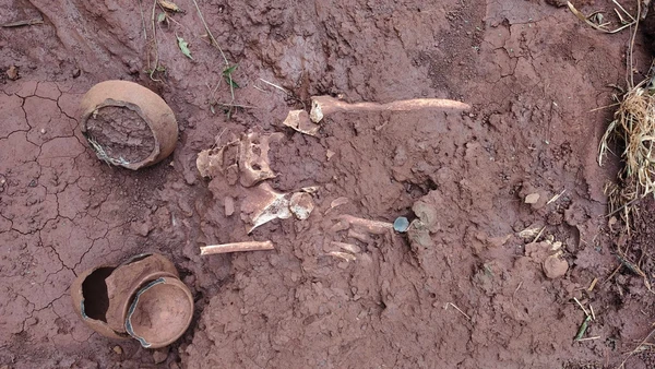 “โคราช” ฝนตกหนักน้ำหลากเซาะหน้าดิน พบโครงกระดูกมนุษย์-เศษเครื่องปั้นดินเผาโบราณ