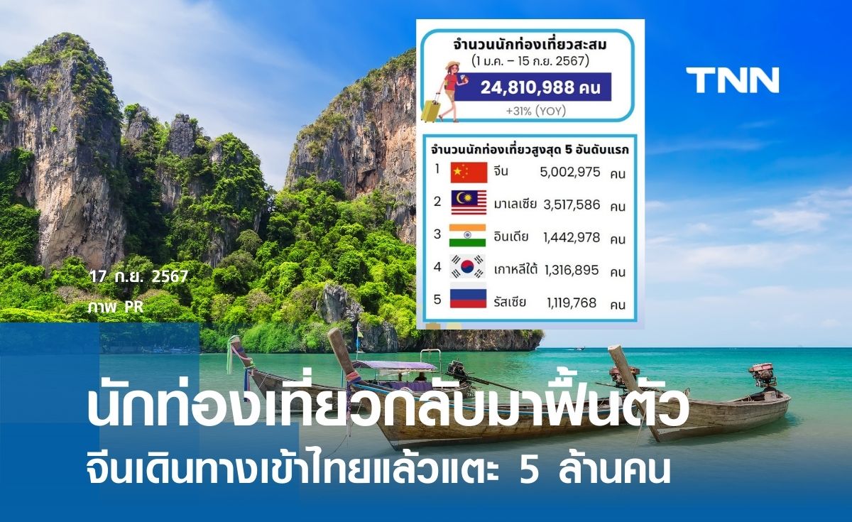 นักท่องเที่ยวกลับมาฟื้นตัว จีนเดินทางเข้ามาแล้วแตะ 5 ล้านคน