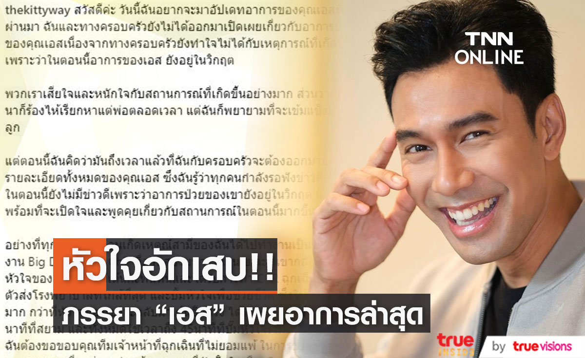ภรรยาอัปเดตอาการล่าสุด "เอส กันตพงศ์" ยังวิกฤต มีอาการหัวใจอักเสบ