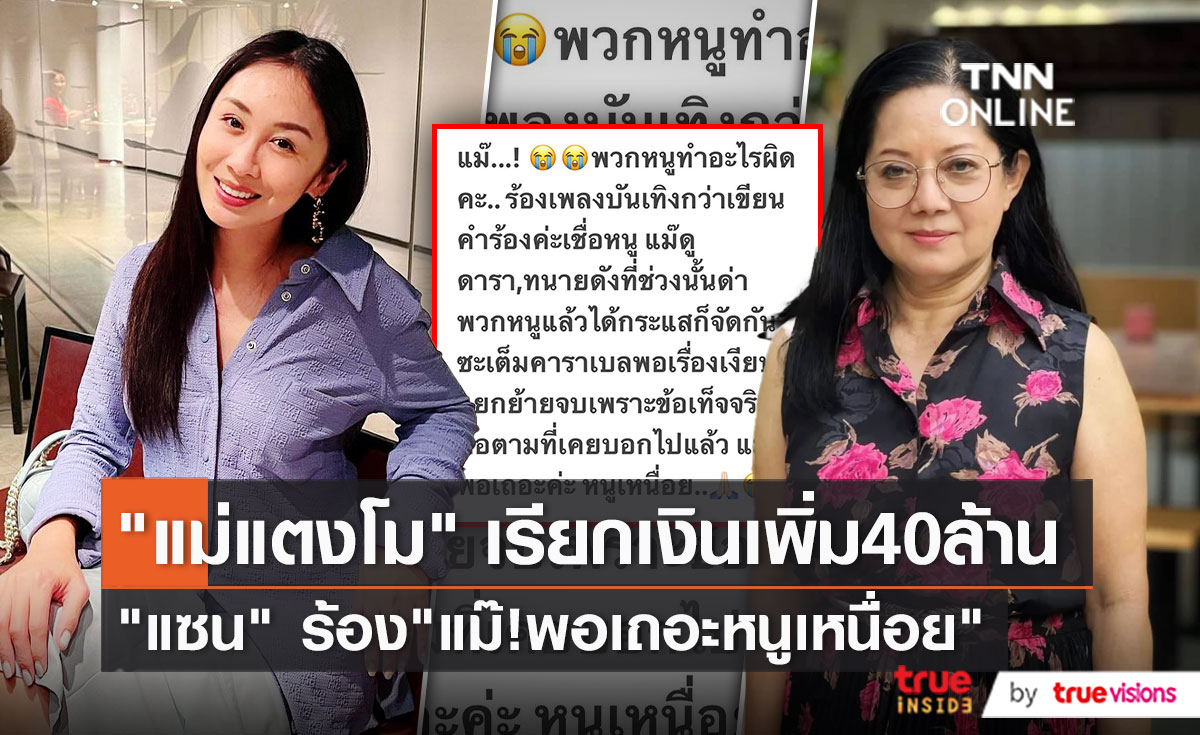 "แม่แตงโม" เรียกเงินเพิ่ม 40 ล้านบาท "แซน" วอนขอแม่พอเถอะค่ะ (มีคลิป)