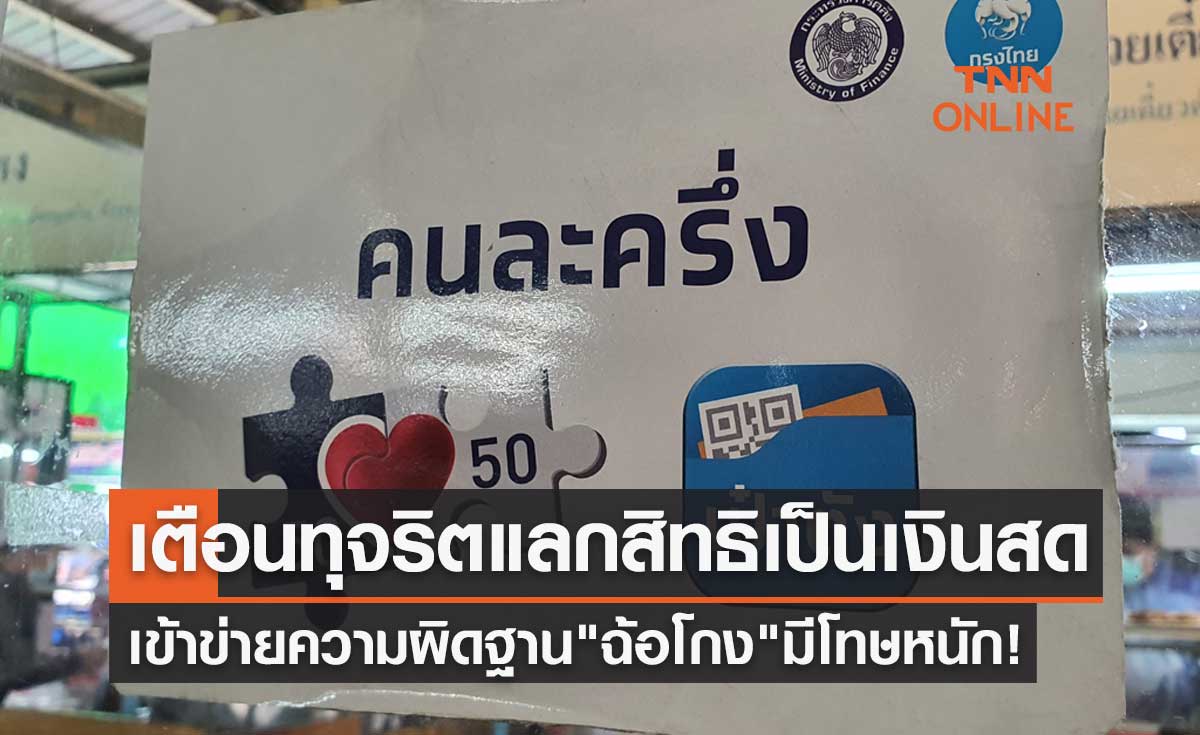 "คนละครึ่งเฟส 5" เตือนทุจริตแลกสิทธิเป็นเงินสด เข้าข่าย "ฉ้อโกง" โทษหนัก!