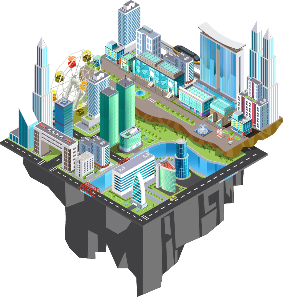 ตัวอย่างภาพเมืองบนโลกเสมือนของ PRX