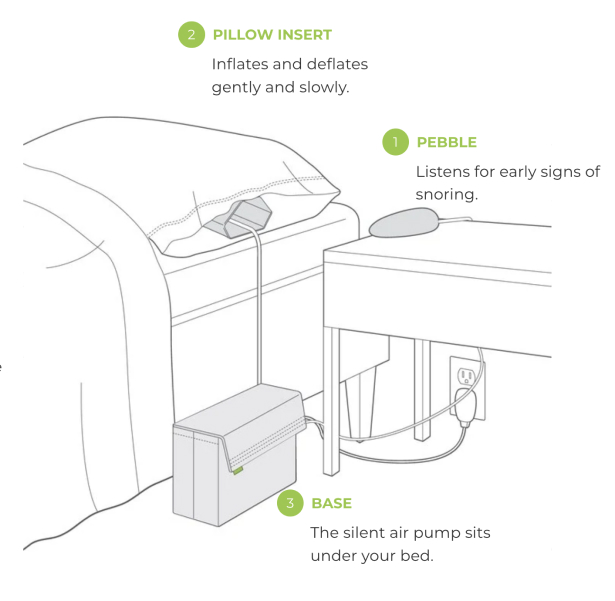สำหรับการใช้งาน เริ่มต้นจากการเปิดเซนเซอร์ตรวจจับการนอนกรน สอดถุงลมไว้ใต้หมอน เชื่อมกับปั๊มลมในกล่อง เปิดสวิตช์ต่าง ๆ จากนั้นก็นอนหลับตามปกติ เพราะโดยปกติแล้วการนอนกรนส่วนใหญ่ เกิดจากระบบทางเดินหายใจส่วนบนตีบแคบ ช่องลมถูกปิดกั้นจนเล็กลง ทำให้เกิดเป็นเสียงกรนขึ้น ดังนั้นเมื่อไหร่ที่เซนเซอร์ตรวจจับเสียงกรนได้ มันก็จะส่งสัญญาณไปที่ถุงลมใต้หมอน เพื่อพองตัวขึ้นให้เราขยับท่าทาง เปิดช่องลมให้กว้าง ทำให้ลดเสียงกรนได้นั่นเอง