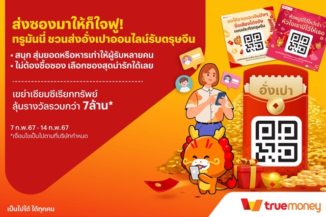 ทรูมันนี่ ผู้นำด้านการให้บริการทางการเงินแบบดิจิทัลชั้นนำในภูมิภาคเอเชียตะวันออกเฉียงใต้ ชวนส่งอั่งเปาออนไลน์ฉลองเทศกาลตรุษจีน ด้วยฟีเจอร์ ‘ส่งซอง’ ในแอปทรูมันนี่ โดยปีนี้มาพร้อมลายซองมังกรสุดน่ารักและคำอวยพรมหาเฮงโดนใจ ให้ผู้รับสแกนคิวอาร์รับเงินได้ง่ายกว่าที่เคย