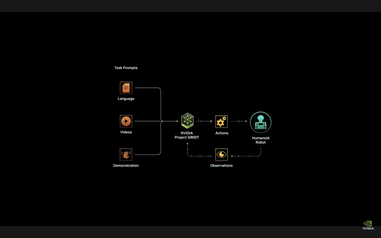 บริษัทเทคโนโลยีผู้ผลิตชิป GPU รายหลักของโลกอย่าง เอ็นวิเดีย (NVIDIA) กำลังผลักดันภาคส่วนหุ่นยนต์ฮิวแมนนอยด์ (Humanoids) หรือ หุ่นยนต์รูปร่างเหมือนมนุษย์ ด้วยการเปิดตัวโปรเจกต์จีอาร์ 00 ที (GR00T) แม้ดูชื่อจะคล้ายตัวละครจากสตูดิโอมาร์เวล (Marvel) แต่ความจริงแล้วย่อมาจาก Generalist Robot 00 Technology ซึ่งเป็นโมเดลพื้นฐาน (Foundation Model) สำหรับหุ่นยนต์ฮิวแมนนอยด์ เป้าหมายคือเพื่อฝึกหุ่นยนต์ให้เข้าใจข้อความ คำพูด รูปภาพ วิดีโอ หรือแม้กระทั่งเรียนรู้จากการสาธิตของมนุษย์ ทำให้หุ่นยนต์สามารถเลียนแบบการเคลื่อนไหวของมนุษย์ได้ จนกระทั่งการประสานงาน ความชำนาญหลายด้าน ทักษะอื่น ๆ รวมไปถึงเพื่อให้สามารถนำทาง ปรับเปลี่ยน และโต้ตอบกับโลกแห่งความเป็นจริงได้