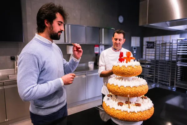 ทีมนักวิทยาศาสตร์จากสวิตเซอร์แลนด์และอิตาลีได้เปิดตัวนวัตกรรม "เค้กแต่งงาน" สุดล้ำ ที่ผสานเทคโนโลยีหุ่นยนต์และศาสตร์การทำอาหารเข้าด้วยกัน ผลลัพธ์คือเค้กหลายชั้นที่ตกแต่งด้วยหุ่นยนต์ขนาดเล็กที่สามารถกินได้และแบตเตอรี่แบบชาร์จไฟชนิดแรกของโลกที่สามารถกินได้อย่างปลอดภัย
