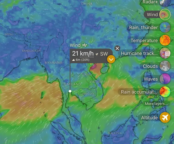เครื่องมือแผนที่แบบเรียลไทม์ที่แสดงภาพถ่ายดาวเทียมและเรดาร์พายุแบบต่อเนื่อง มีฟีเจอร์การติดตามพายุเฉพาะตัว เช่น แสดงเส้นทางการเคลื่อนที่ ความเร็วลม และตำแหน่งล่าสุดของพายุ เหมาะสำหรับการติดตามพายุ “วิภา” โดยเฉพาะในช่วงเวลาที่เคลื่อนเข้าสู่จีนและฮ่องกง
