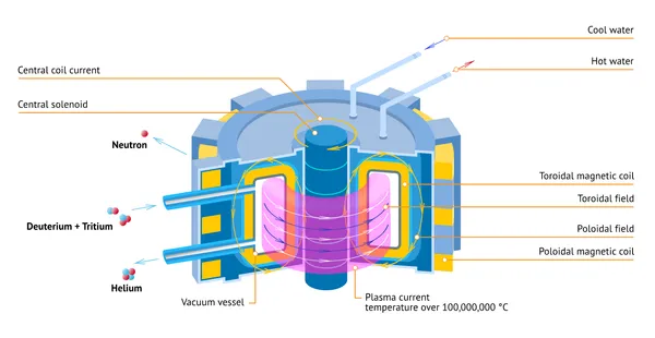 Schematics of fusion power plant on tokamak principle. Credit: Energy Encyclopedia.