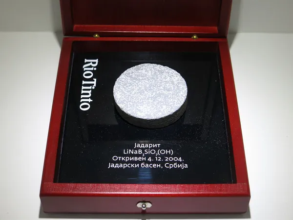 ในปี 2004 นักธรณีวิทยาของ ริโอ ทินโท (Rio Tinto) บริษัททำเหมืองแร่ออสเตรเลีย - อังกฤษ ค้นพบแร่ที่มีลักษณะที่อัดเป็นผงสีขาวนุ่ม ซึ่งจากการวิเคราะห์ตรวจสอบองค์ประกอบทางเคมีนั้นพบว่าประกอบไปด้วยแร่ลิเทียม (Lithum) กับโบรอน (Boron) [สูตรทางเคมี: LiNaSiB3O7(OH)] ซึ่งเป็นองค์ประกอบสำคัญในอุตสาหกรรมพลังงานอย่างการทำแบตเตอรี่ และเนื่องจากแร่ดังกล่าวถูกค้นพบที่เหมืองในเขตหุบเขา Jadar ประเทศเซอร์เบีย จึงตั้งชื่อแร่ใหม่นี้ว่า จาดาไรต์ (Jadarite)