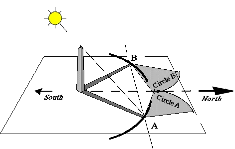 ตัวอย่างเช่น ในตอนเช้า เงาจะทอดยาวไปทางทิศตะวันตก และในตอนบ่าย เงาจะทอดไปทางทิศตะวันออก ส่วนช่วงเที่ยง เงาจะสั้นที่สุดและชี้ไปใกล้ทิศเหนือและทิศใต้ ขึ้นอยู่กับตำแหน่งซีกโลกที่เราอยู่