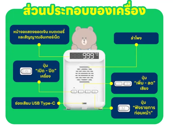 LINE Pay เปิดตัว “QR BOX” กล่องชำระเงินดิจิทัลสำหรับร้านค้า ใช้งานง่ายเพียงกดปุ่มเปิดเครื่องค้างไว้จนขึ้นไฟสีน้ำเงินและได้ยินเสียงแจ้ง “LINE Pay QR BOX บอกยอดปั๊บ รับเงินชัวร์” จากนั้นเมื่อไฟเปลี่ยนเป็นสีเขียวและระบบเชื่อมต่อสำเร็จก็พร้อมใช้งานทันที ลูกค้าสามารถสแกนจ่ายผ่านทั้ง PromptPay และ LINE Pay ได้สะดวก พร้อมระบบแจ้งเตือนยอดเงินอัตโนมัติ ร้านค้าสามารถปรับเสียง ตรวจสอบรายการก่อนหน้า หรือดูสถานะแบตเตอรี่และสัญญาณอินเทอร์เน็ตได้บนตัวเครื่องโดยตรง และตรวจสอบยอดรับเงินผ่านแอป Wongnai Merchant ได้ทุกวัน โดยเงินจะโอนเข้าบัญชีธนาคารในวันถัดไป