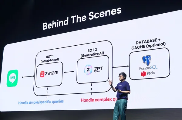 Messaging API ยังคงเป็นหัวใจสำคัญของการสร้างบริการบน LINE ภายในงาน Zwiz.AI โชว์ศักยภาพการผสาน AI เพื่อพัฒนา Group Bot ให้ทำงานได้ทรงพลังยิ่งขึ้น ด้วยแคมเปญ “น้องซี N’Zee” แชทบอทในไลน์กลุ่มขององค์กร ที่เริ่มต้นจาก HR Bot ช่วยบันทึกการลาและตอบคำถามทั่วไป เช่น รหัส Wi-Fi เบอร์ออฟฟิศ บันทึกการขาย ไปจนถึงช่วยจองห้องประชุม ก่อนจะต่อยอดด้วย AI และ LLM เพื่อรองรับงานหรือตอบคำถามที่ซับซ้อนขึ้นได้ ด้วยข้อมูลที่นอกเหนือจากภายในองค์กร เช่น คิดไอเดียโปรโมชัน สรุปข้อมูล เป็นต้น