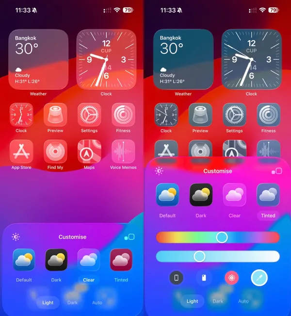 เลือกไอคอน (Dark, Clear, Tinted หรือ Default)