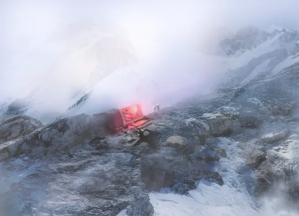 โดยวิธีการสร้างแรกเริ่ม แทนที่จะสร้างกระท่อมบนภูเขาโดยตรง ทีมงานเลือกสร้างกระท่อมให้เสร็จจากโรงงาน แล้วใช้เฮลิคอปเตอร์ยกชิ้นส่วนขึ้นไปติดตั้งบนพื้นที่สูง ช่วยให้ควบคุมคุณภาพได้มากขึ้นและลดผลกระทบต่อสิ่งแวดล้อม