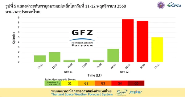 สำหรับความรุนแรงระดับ G1-G5 นั้น GISTDA ประเทศไทยได้อธิบายเอาไว้อย่างน่าสนใจ ประกอบด้วย
