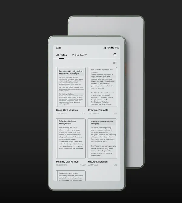 บริษัท ไววูดส์ (Viwoods) เปิดตัว ไอเปเปอร์ รีดเดอร์ (AiPaper Reader) เครื่องอ่านอีบุ๊กขนาดพกพาที่ผสานเทคโนโลยี อีอิงค์ คาร์ตา 1300 (E Ink Carta 1300) เข้ากับระบบ ผู้ช่วยอัจฉริยะ (AI Assistant) เพื่อมอบประสบการณ์การอ่านยุคใหม่ที่ทั้งฉลาดและเป็นส่วนตัวมากขึ้น