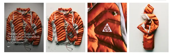 ไนกี้ เอซีจี (Nike ACG) เปิดตัว ลาวา ลอฟต์ ดาวน์ แจ็คเก็ต (Lava Loft Down Jacket) เสื้อแจ็คเก็ตที่ใช้ขนเป็ดระดับ 700 ฟิลพาวเวอร์ (700-fill down insulation) น้ำหนักเพียง 10 ออนซ์ หรือเท่ากับประมาณ 283 กรัม ออกแบบมาเพื่อรองรับสภาพอากาศสุดโต่ง เช่นอุณหภูมิที่อาจเปลี่ยนแปลงอย่างรวดเร็ว บนเส้นทางวิ่งเทรลของนักกีฬาเอาต์ดอร์ทั่วโลก