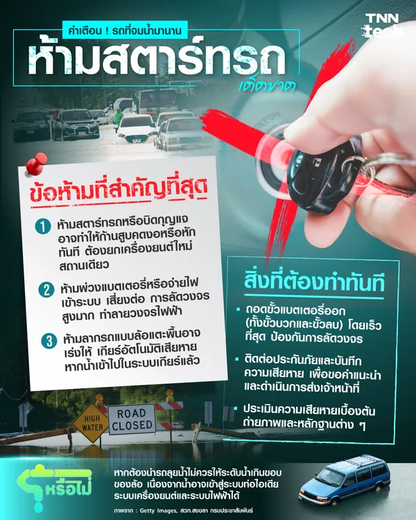 คำเตือนสิ่งที่ห้ามทำกับรถยนต์ที่ถูกน้ำท่วม