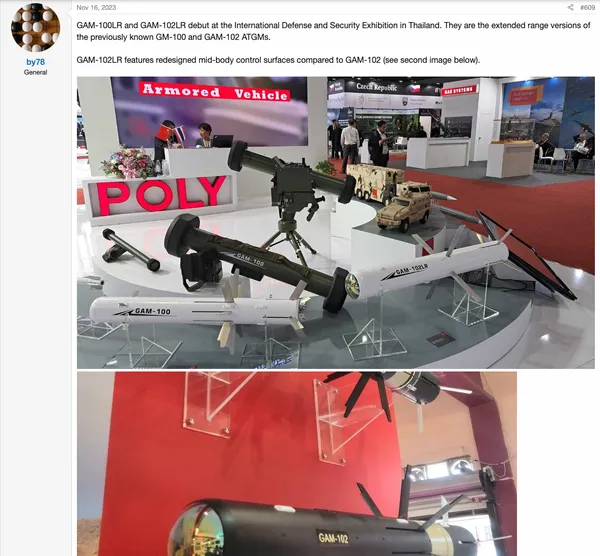 จากภาพรายงานในสื่อหลายสำนักที่ระบุว่าทหารของไทยในพื้นที่เนิน 500 เข้าตรวจยึดระบบขีปนาวุธต่อต้านรถถังนำวิถีรุ่น GAM-102 LR ที่มาจากจีนได้ ซึ่งมีขีดความสามารถในการต่อต้านรถถัง ทหารราบ และสิ่งปลูกสร้างในระยะ 10 กิโลเมตร แม้ข้อมูลเบื้องต้นจะระบุว่าเป็นระบบที่เปิดตัวในปี 2025 แต่กลับพบภาพถ่ายการจัดแสดง GAM-102 LR ในงาน Defense & Security ปี 2023 ที่ประเทศไทยด้วยเช่นกัน
